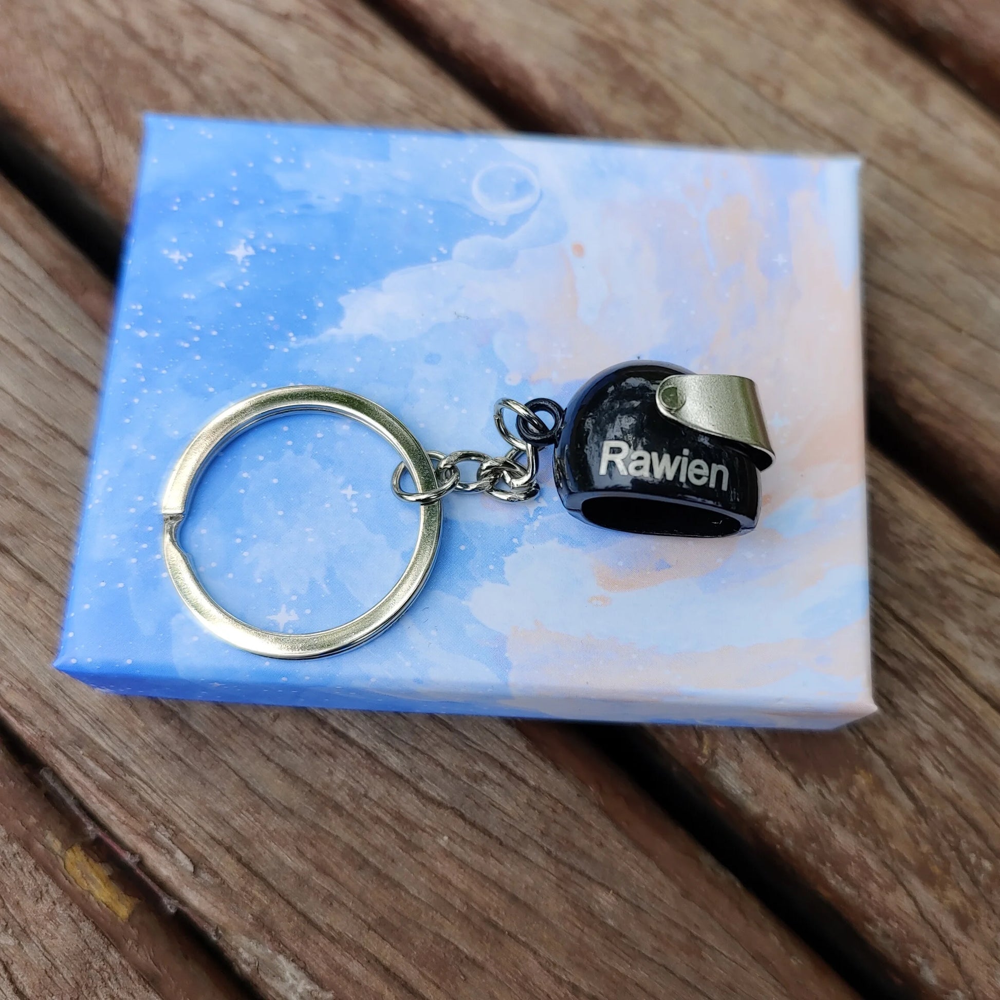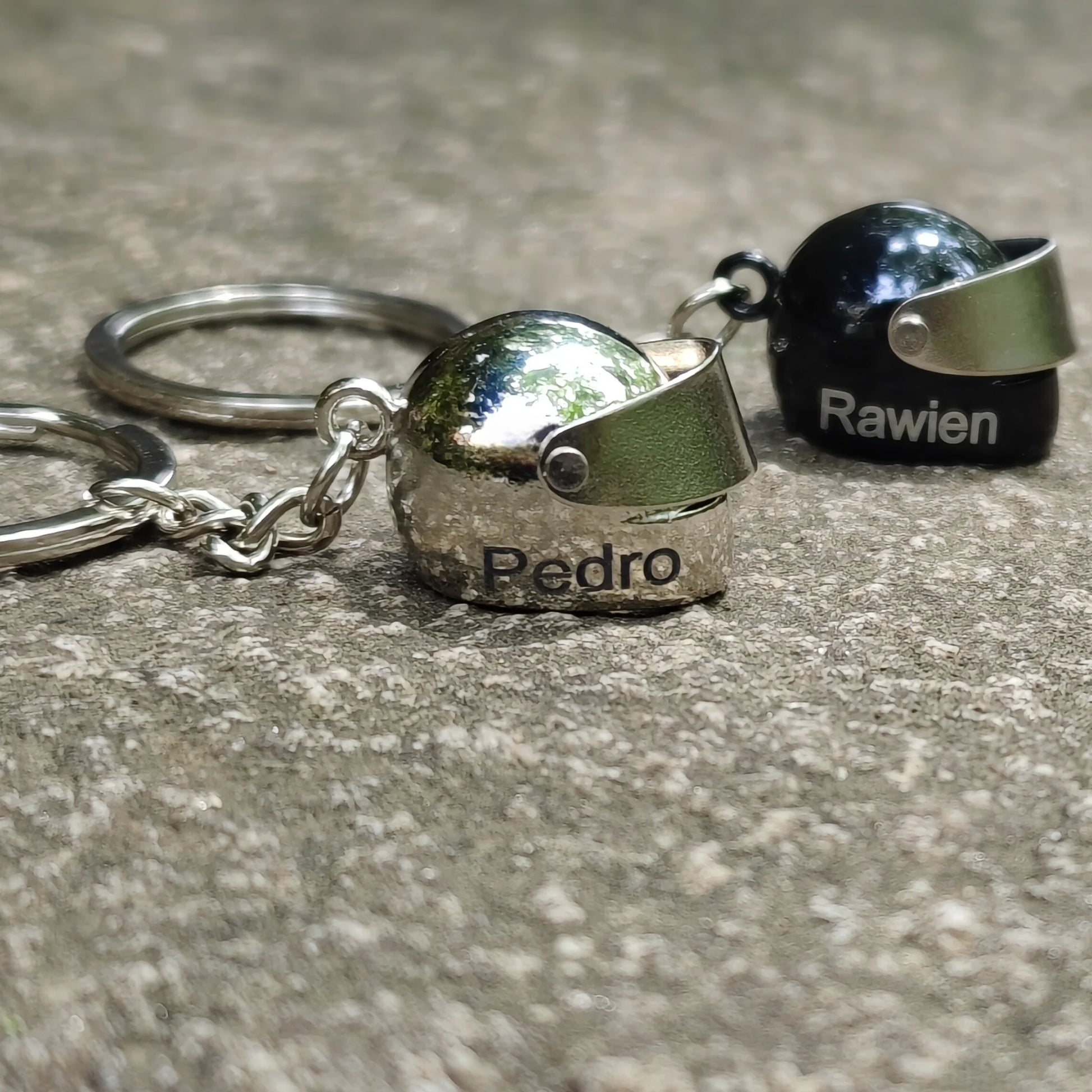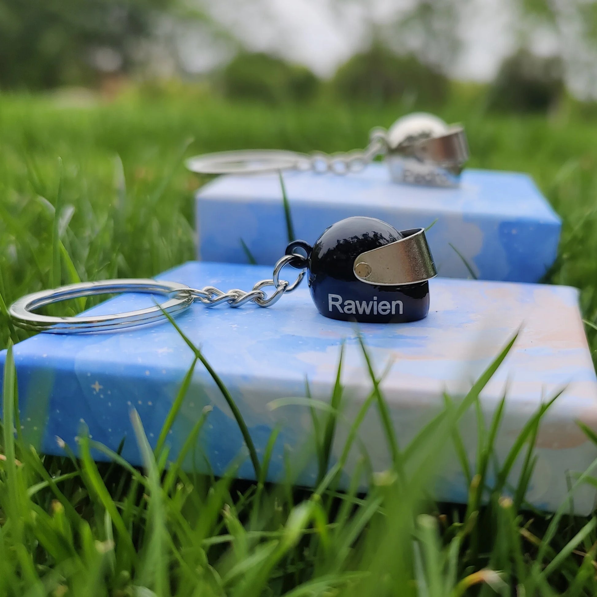Llavero de casco de moto personalizado con nombre grabado, minicasco de metal moderno con caja de regalo