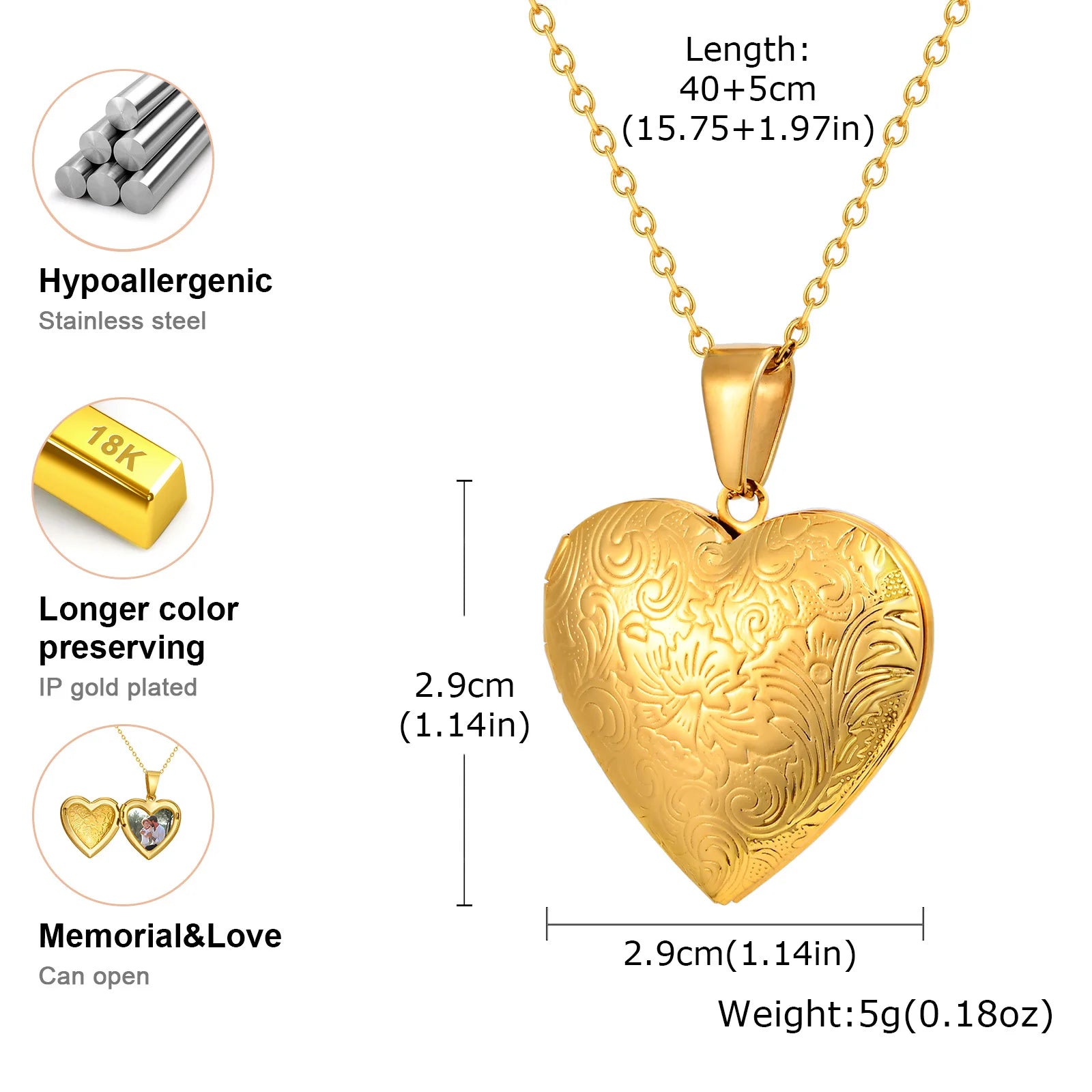 Este elegante medallón de corazón de Vnox es más que una simple joya: es un pequeño recuerdo que llevarás contigo para siempre. Fabricado en acero inoxidable de alta calidad y con un acabado dorado brillante, combina una elegancia atemporal con un significado verdaderamente personal.
