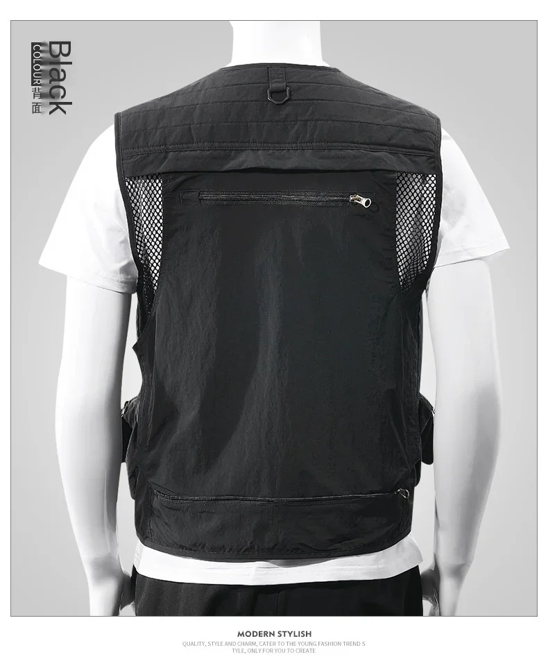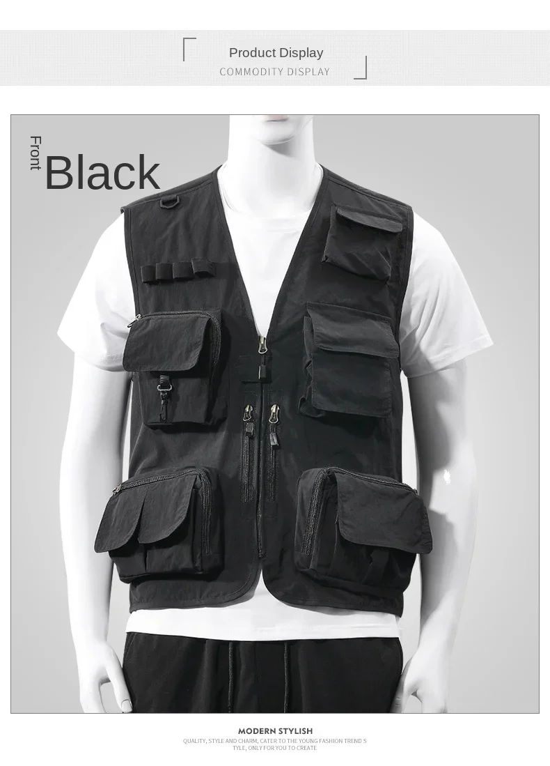 Diese hochwertige Herrenweste ist der ideale Begleiter für Camping, Jagd, Reisen und Outdoor-Arbeit. Gefertigt aus strapazierfähigem Polyester-Broadcloth überzeugt sie durch Langlebigkeit, Funktionalität und einen smart-casual Look. Das ärmellose Design bietet maximale Bewegungsfreiheit, während der durchgehende Reißverschluss ein bequemes An- und Ausziehen ermöglicht.