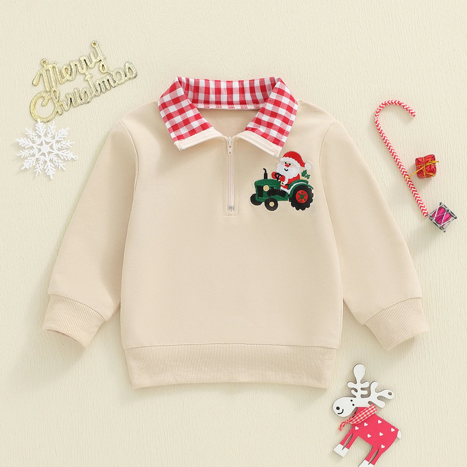 Dieses Weihnachts Sweatshirt vereint kuscheligen Tragekomfort mit liebevollen Festtagsdetails. Gefertigt aus einem weichen Baumwoll-Polyester-Mix ist es angenehm auf der Haut und ideal für aktive Kids. Der karierte Umlegekragen in klassischen Weihnachtsfarben sorgt für einen verspielten Look, während die hochwertigen Stickereien – ob fröhlicher Lebkuchenmann, Santa auf seinem Traktor oder festlich geschmückter Weihnachtsbaum – für strahlende Kinderaugen sorgen.