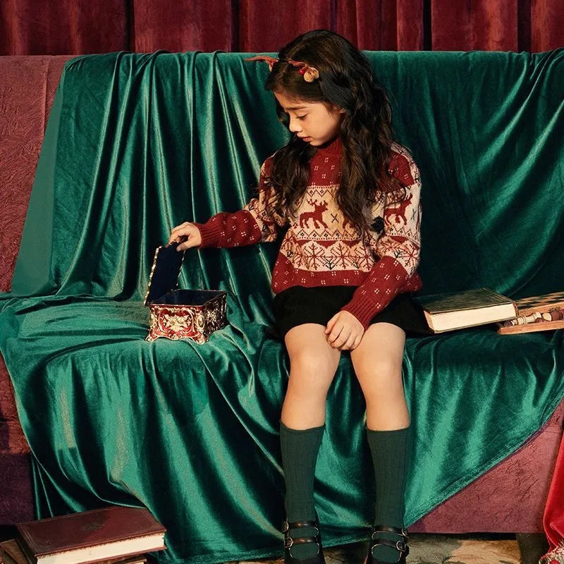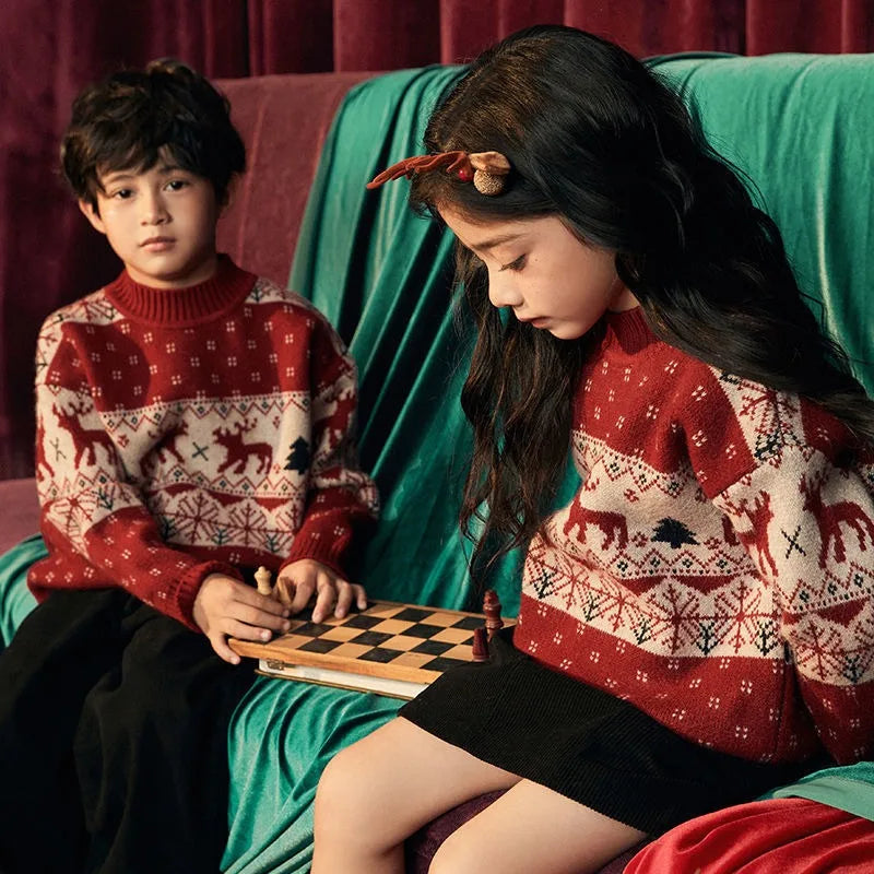 Der „Festliche Rentier-Pullover“ für Jungen und Mädchen ist das Must-have für die kalte Jahreszeit. Inspiriert vom koreanischen Modestil kombiniert er gemütlichen Tragekomfort mit verspieltem Weihnachtscharme. Das Jacquard-Muster aus Rentieren, Tannen und Schneeflocken sorgt für nordisches Winterfeeling, während das flauschige Innenfutter angenehm wärmt – ideal für Spaziergänge im Schnee oder kuschelige Tage zu Hause.