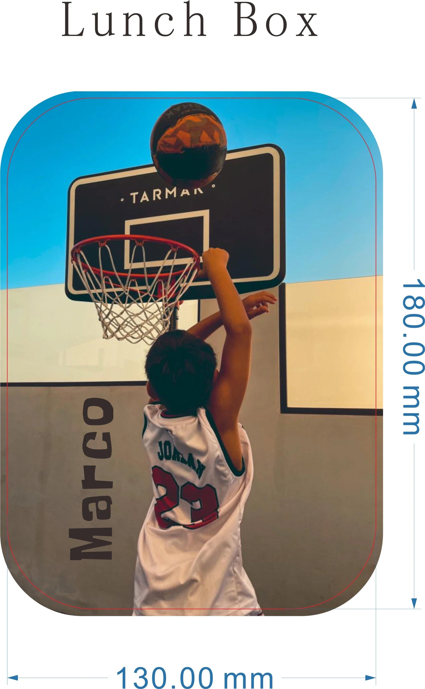 Gefertigt aus hochwertigem, ökologischem Kunststoff ist die Lunchbox leicht, robust und ideal für den täglichen Gebrauch. Mit einer Größe von 20 × 15 × 6 cm bietet sie ausreichend Platz für Snacks, Brot, Obst oder kleine Mahlzeiten. Auf der oberen Abdeckung steht eine großzügige Druckfläche von bis zu 18 × 13 cm zur Verfügung, damit Ihr Wunschmotiv optimal zur Geltung kommt.