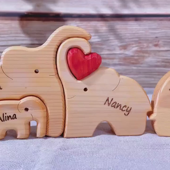 Personalisiertes Elefanten-Holzpuzzle – Familiennamen Dekofigur | Geschenk für Eltern & Weihnachten